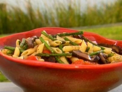 Remove stems from Portobello mushrooms. Brush mushrooms, asparagus and tomatoes with olive oil. Grill mushrooms over medium heat until tender, 4 to 5 minutes per side, turning occasionally. Cut mushrooms into thin strips; place in a medium bowl. Grill asparagus over medium heat for 3 to 4 minutes, turning occasionally. Cut asparagus into 2 inch lengths; add to mushrooms in bowl. Grill tomatoes, cut side down, over medium heat for 3 minutes. Add to mushrooms and asparagus and toss in the pasta. Drizzle with lemon juice and olive oil. Sprinkle with seasoning, tossing gently to coat.[print-me target=".post-content"]