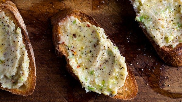 Slices of crusty bread½cup unsalted butter (1 stick), softened½cup grated Parmesan2½ tablespoons chopped young spring garlic stalks, white and green parts1tablespoon minced chives¼teaspoon black pepper¼teaspoon fine sea salt, more to tasteLarge pinch red chile flakes1regular (not green) garlic clove, halvedHeat the broiler. Place the bread slices on a baking sheet and broil them, flipping them halfway through cooking time, until golden on both sides. Keep warm.In a bowl, stir together the butter, cheese, green garlic, chives, pepper, salt and chile.Rub the toast with the cut side of the regular garlic clove, then spread with the green garlic butter. Broil toast again for 30 seconds to 2 minutes, until the tops lightly brown and the butter melts. Serve hot or warm.