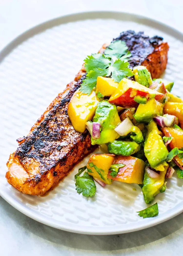 Sprinkle spice mixture evenly on all sides of the salmon. Refrigerate uncovered while making the salsa and preheating the grill, about 20 minutes.